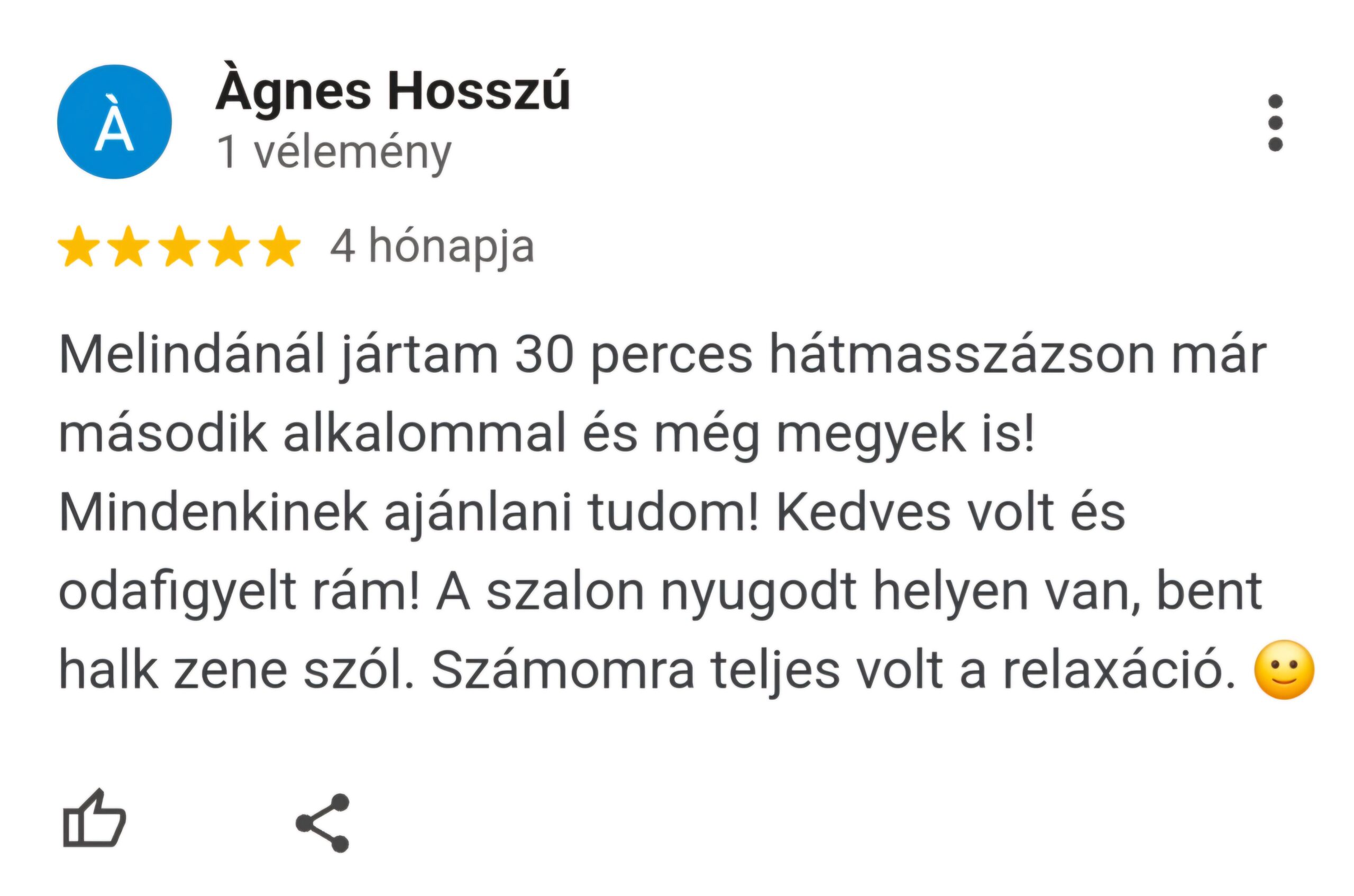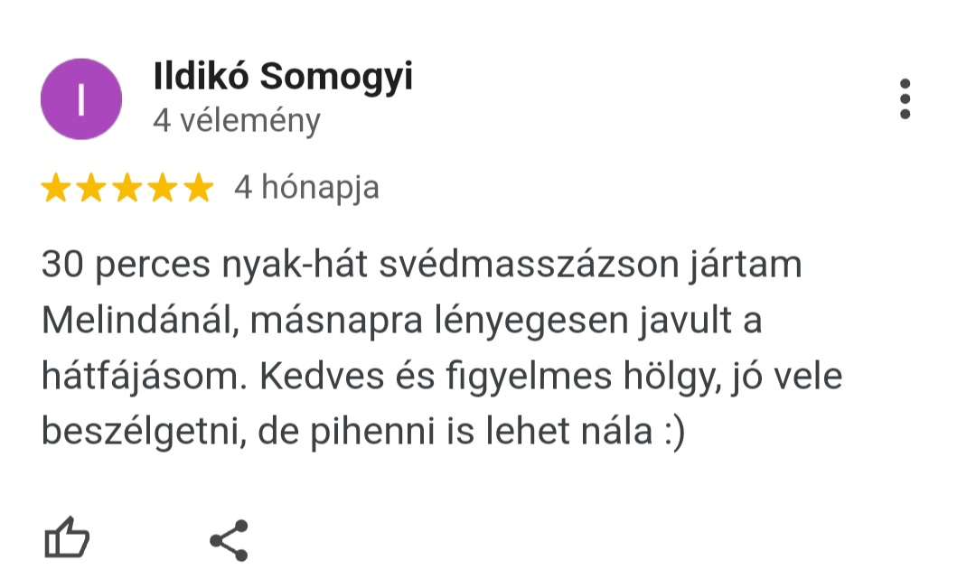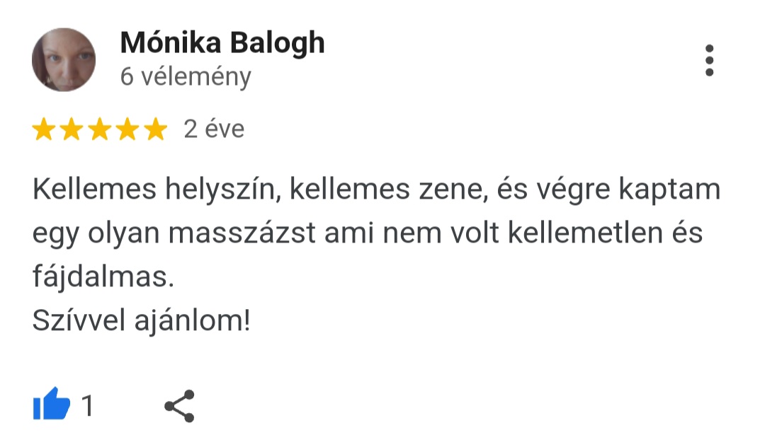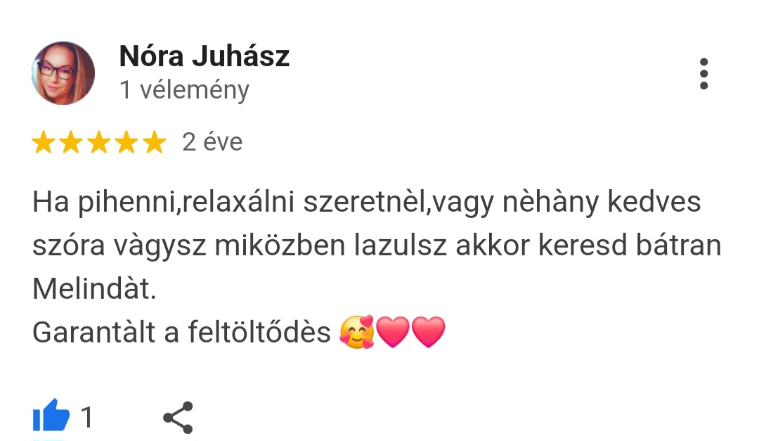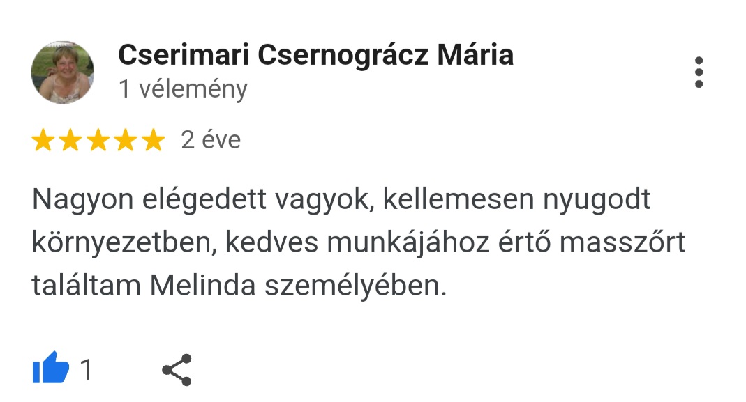 Köszönöm szépen mindenkinek, aki már szánt egy-egy percet arra, hogy megossza másokkal is a nálam szerzett tapasztalatát! Ha Te is jártál már nálam és elégedett voltál velem, és még nem hagytál értékelést, kérlek tedd meg most!